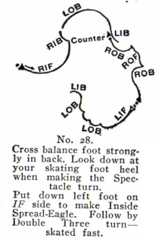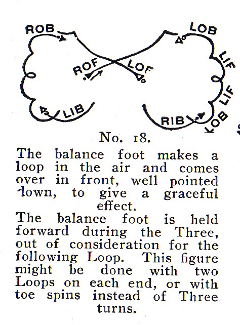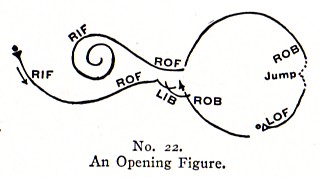 The following 'figures' form a bridge between the edges and turns of English figures and the International Style of skating found on the Continent in the early decades of the 20th century. Most of them form the type of transitions and step sequences found in free skating programmes todays. Some became the foundation for compulsory dances. |