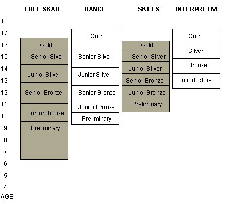 When the goal is to pass four Gold Tests- Free Skating, Interpretive, Dance and Skills before University (age 17-18) it is more efficient to commence training each branch in step-wise fashion rather than simultaneously. Delaying the start of certain branches gives skaters an opportunity to learn in concert with their natural physical and mental maturity. Activities based heavily on memory work such as learning the steps of Dances and Skating Skills and mentally and physically demanding activities such as developing complex emotional and/or artistic connections in skaters who can't yet skate well enough or aren't mature enough can be a waste of precious time. That time would be better spent learning complex free skating movement with a view to transferring that skill to the other branches at the appropriate time. Since transfer flows from the complex to the simple, learning free skating first, not entirely to its conclusion but as a first step, provides a head start on other branches without compromising progress to the Gold Free Skate test.